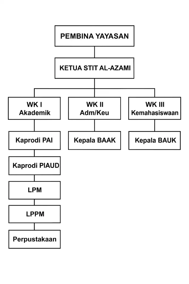 Struktur Organisasi STIT Al-Azami diatur berdasarkan Statuta dan Pedoman Akademik Institusi.